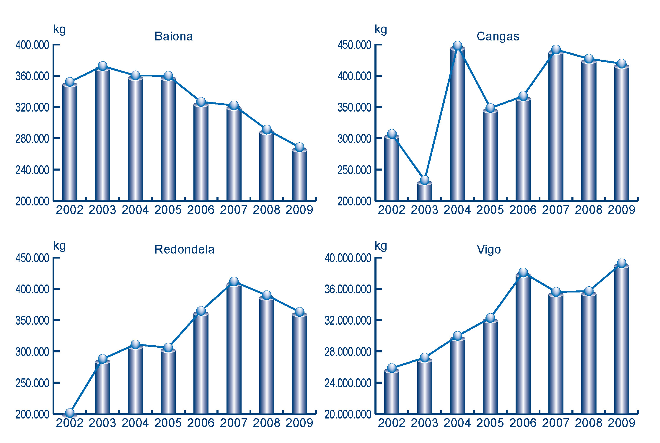 | Baiona | 268.575 | 2.207.736 | 291.111 | 2.664.033 | -22.537 | -456.297 | -7,74% | -17,13% |