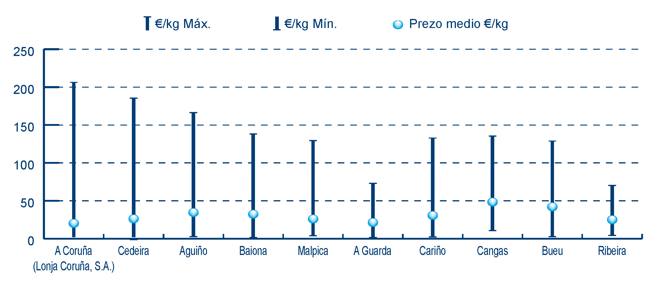 | A Coruña (Lonja Coruña, S.A.) | 219 | 56.131 | 18,33% | 1.138.594 | 13,24% | 20,28 |