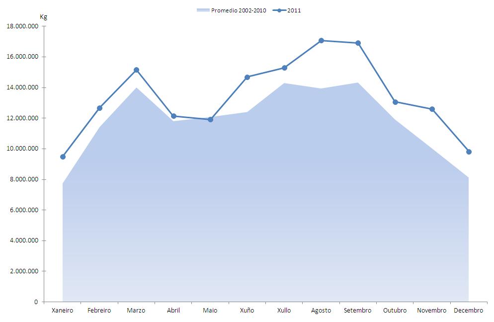 | Xaneiro | 9.490.043 | 24.203.337 | 8.471.246 | 22.623.240 | 1.018.798 | 1.580.097 | 12,03% | 6,98% |