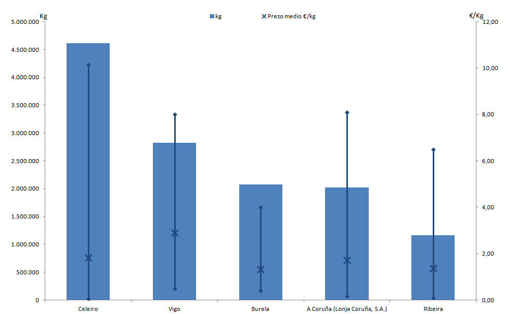 | A Coruña (Lonja Coruña, S.A.) | 259 | 2.022.981 | 15,89% | 3.477.889 | 14,18% | 1,72 |