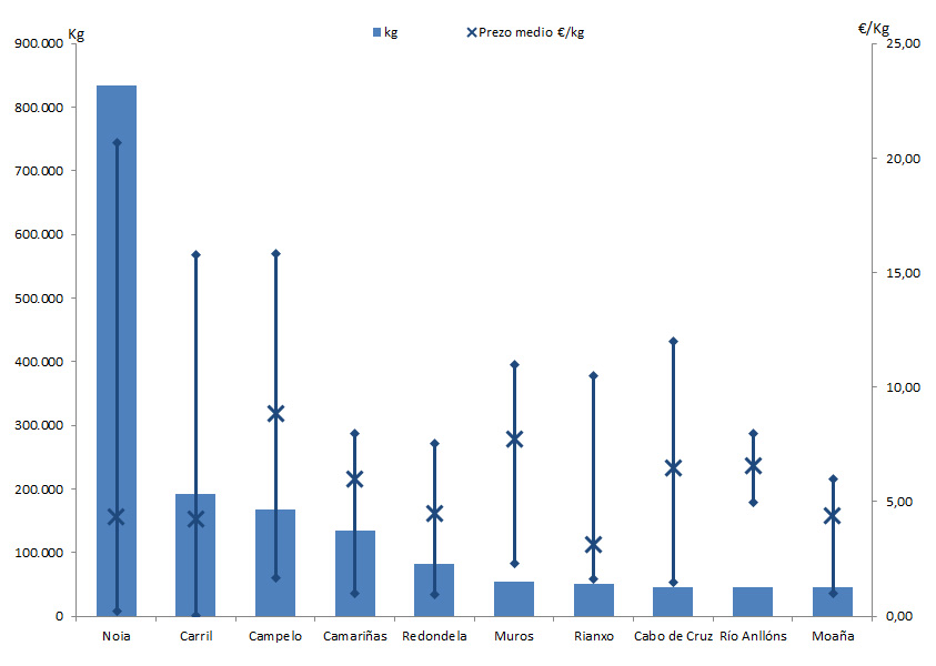 | Muros | 82 | 55.130 | 3,04% | 426.957 | 4,70% | 7,74 |