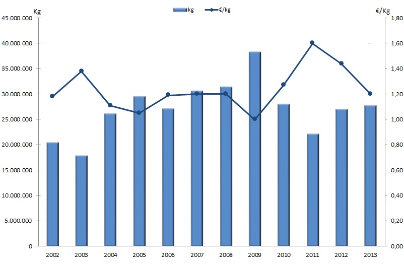 | Nº días | kg | % | Euros | % | Euros/kg | |