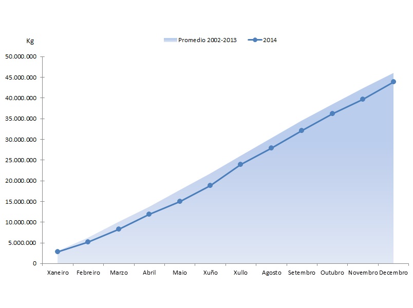 | Bivalvos | 3.204.855 | 30.411.870 | 3.642.229 | 29.346.835 | -437.374 | 1.065.035 | -12,01% | 3,63% |
