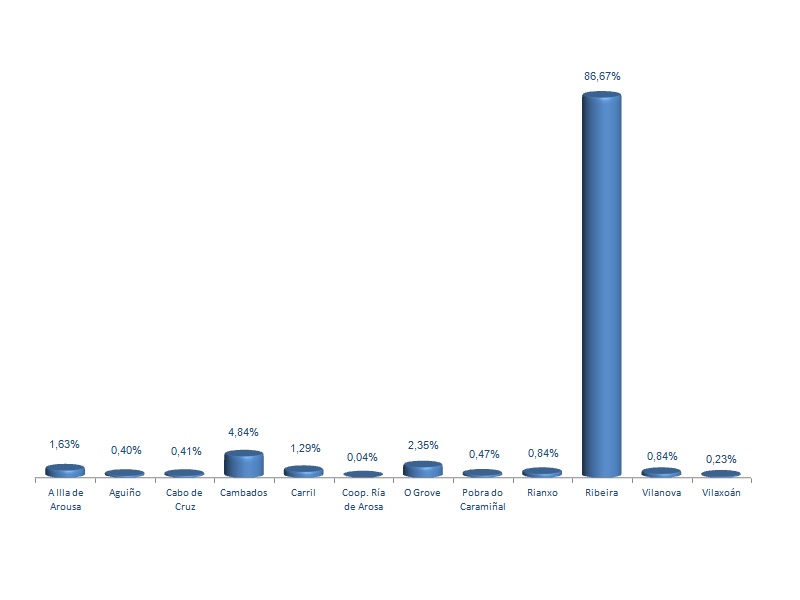 | Rianxo | 288.701 | 0,84% | 2.274.214 | 3,27% | 7,88 |