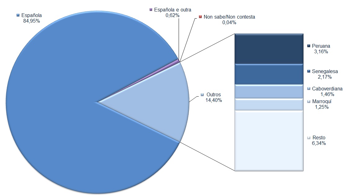| Estranxeira | 940 | 10,20% | 384 | 34,47% | 367 | 25,86% | 1.691 | 14,40% |